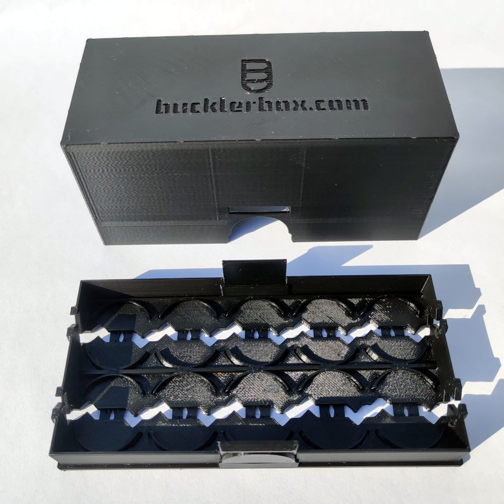For a box with custom dimensions, colors or designs, feel free to contact me at info@bucklerbox.com